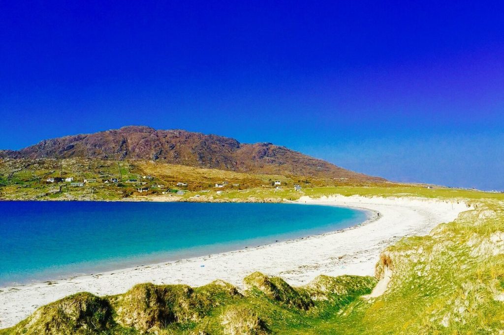 Transitioning from the inland calm of the Glenveagh region toward the Gweedore coastline allows drivers to experience a changing landscape that moves from moorland to beach-lined bays. Although Glenveagh is known for its national park, the coastal extension toward the town influenced by the Gweedore cultural area brings visitors into a Gaeltacht community where traditional language and music shape daily life. The route gives glimpses of distant islands, long sandy stretches, and low-lying dunes dotted with grasses that sway under steady Atlantic winds. Because the region spreads across multiple small villages rather than one central hub, drivers encounter modest traffic and have freedom to stop in quiet places. The sense of cultural continuity enriches the drive, making the journey feel grounded in local identity rather than curated sightseeing. Gentle road gradients and open coastal plains create a calm rhythm that suits travelers spending extended time exploring by car.