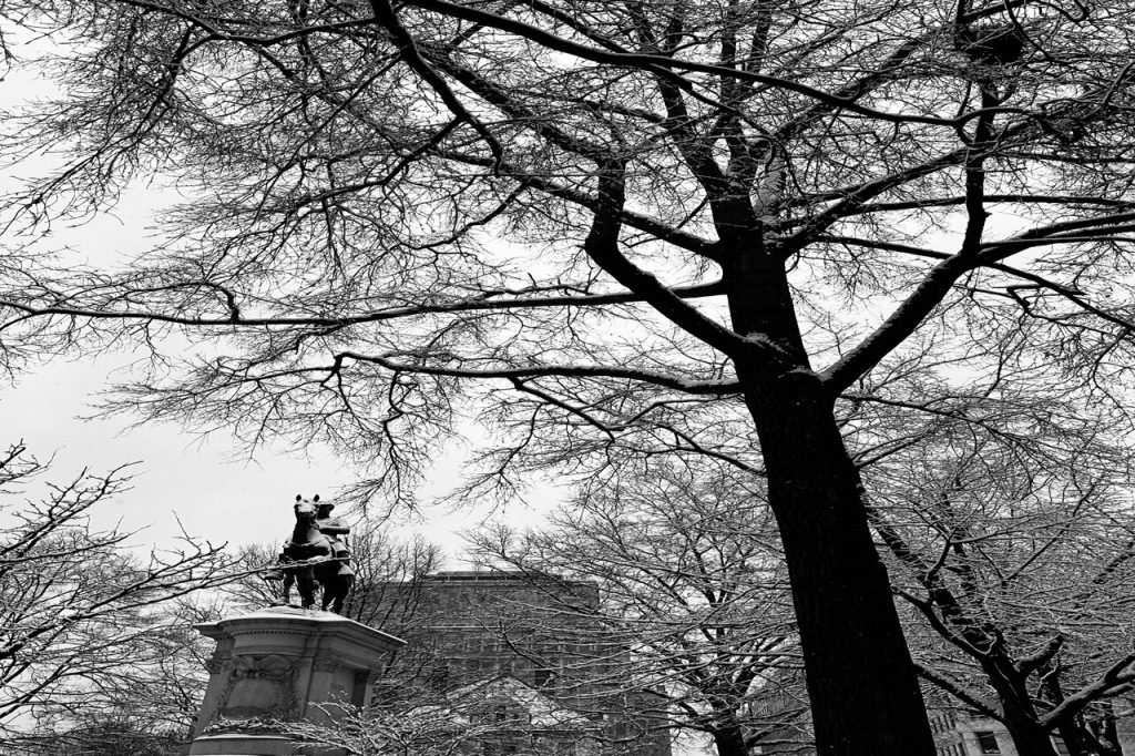 Louisburg Square rests in peaceful stillness as the holidays unfold. Snow gathers on iron fences, evergreen garlands hang from ornate doors, and candlelight glows from tall windows. The hush that fills the square feels sacred, interrupted only by the faint crunch of footsteps on the walkways. It’s a setting that could frame a tender film moment—neighbors pausing to greet, lovers walking home, or a solitary figure admiring the lights. In its stillness, Beacon Hill breathes poetry.